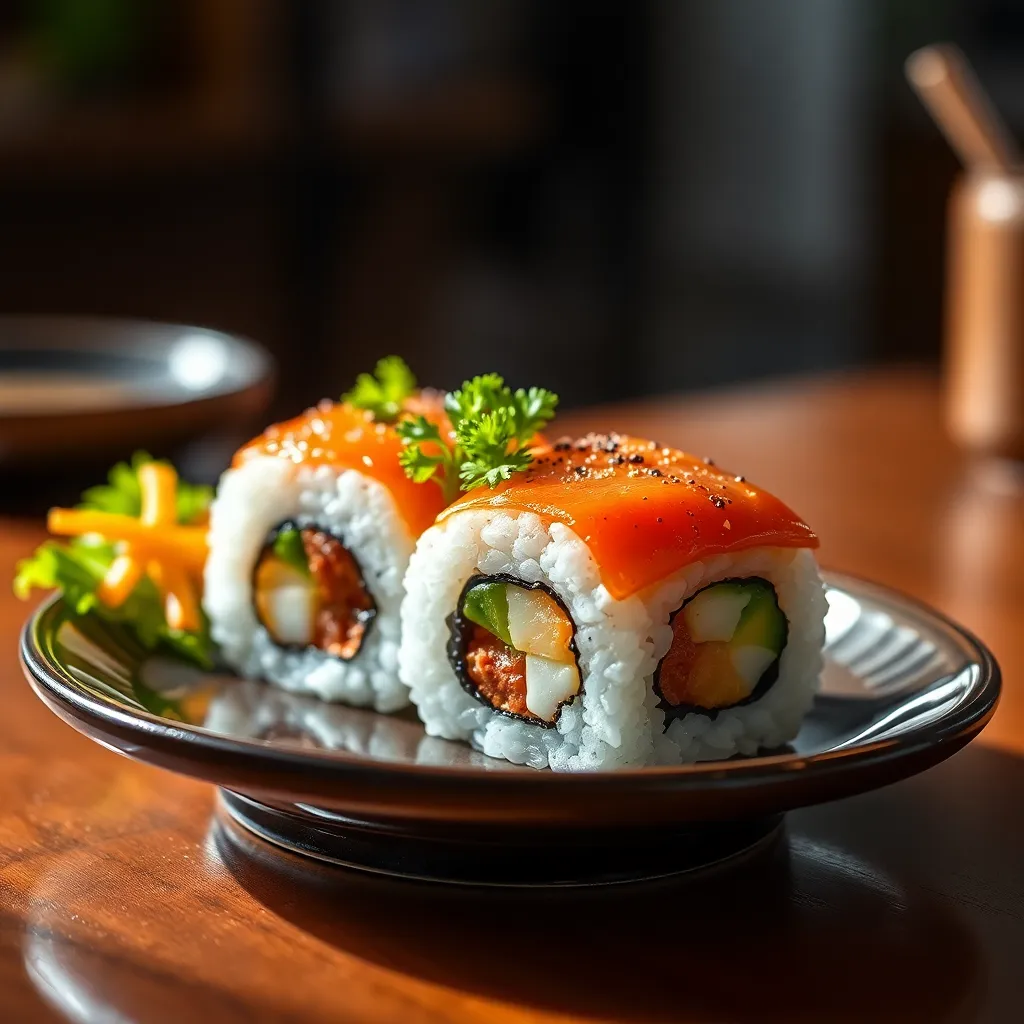 - Slice the roll into bite-sized pieces and serve with soy sauce.